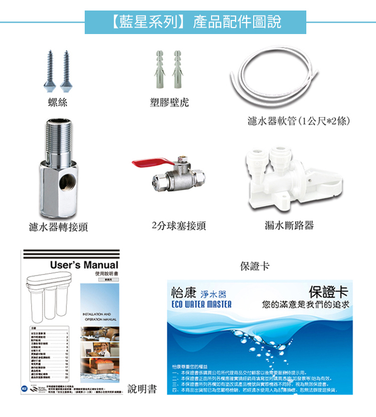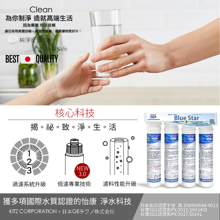 ★本商品為藍星系列【廚上型】【廚下型】快拆式四道 除氯 淨水器★