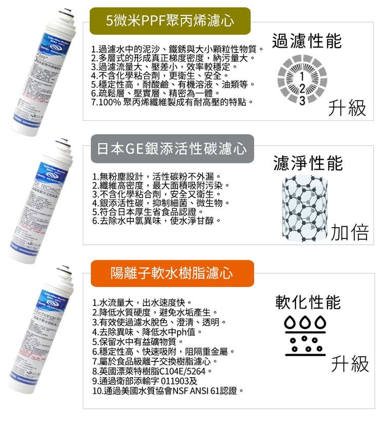 濾材一旦過水使用,即開始過濾水中各種雜質或汙染物,若超過建議更換時間未予更換,將無法確保過濾品質,嚴重將成為細菌溫床,反讓濾水系統汙染。為確保您飲水衛生安全,請定期更換濾心。