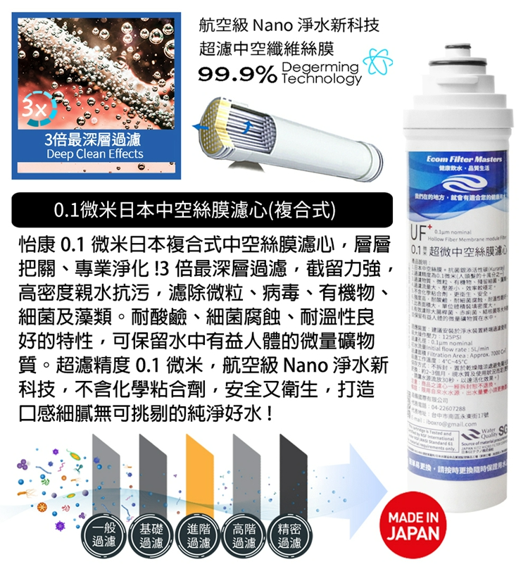 ◆除菌級精濾,保留水中礦物質及微量元素。