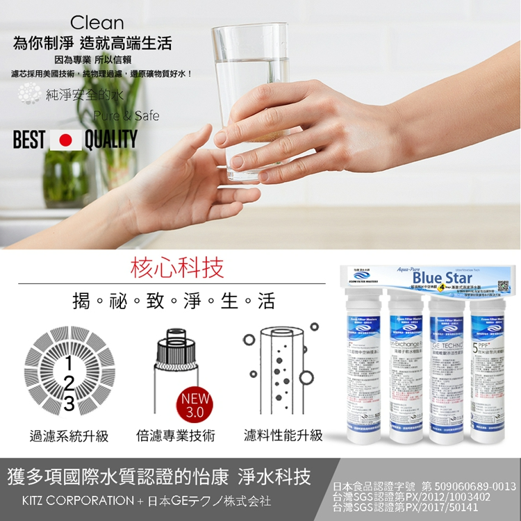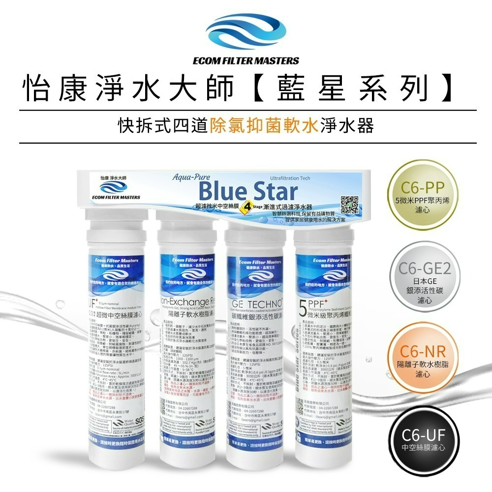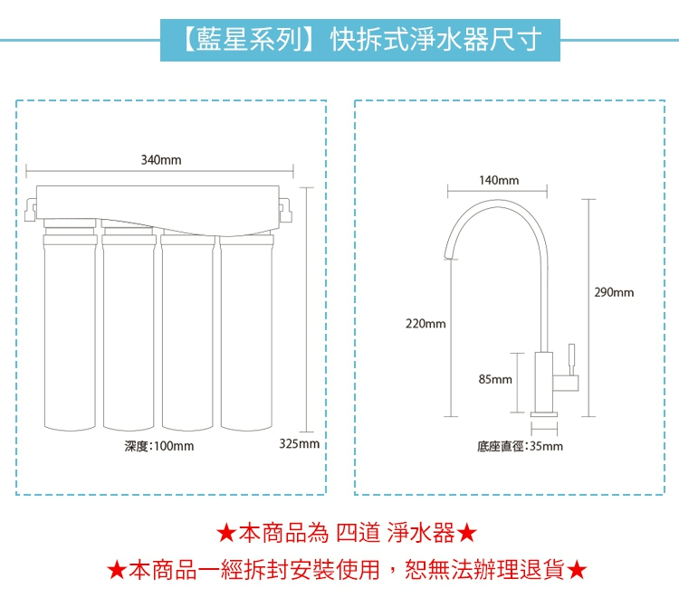★本商品為藍星系列【廚上型】【廚下型】快拆式四道 除氯抑菌軟 淨水器★