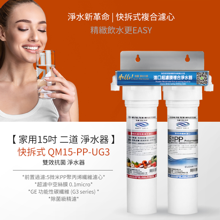 UG3複合濾心:超濾中空絲膜 0.1micro/GE 功能性碳纖維 (G3 series)