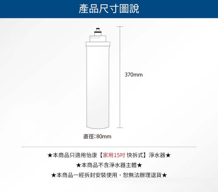 ★本商品只適用怡康【家用15吋 快拆式】淨水器★