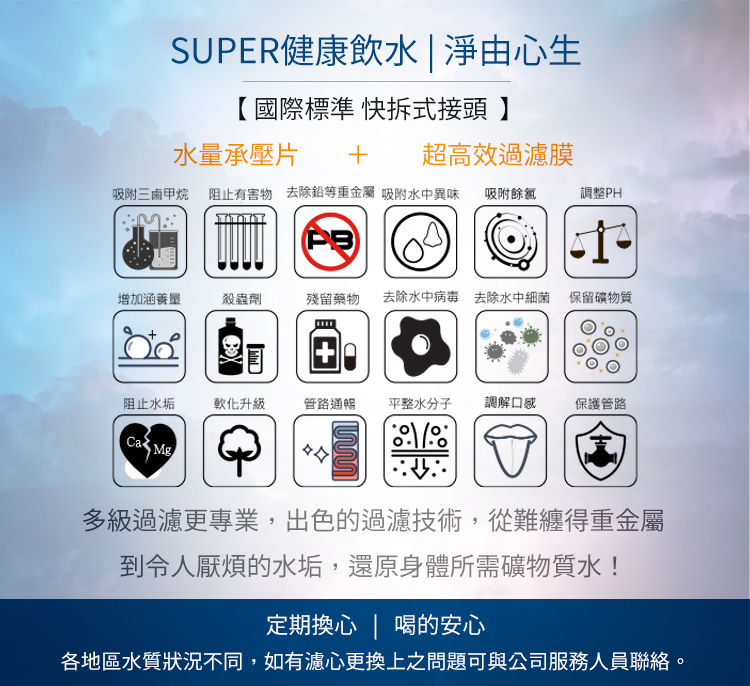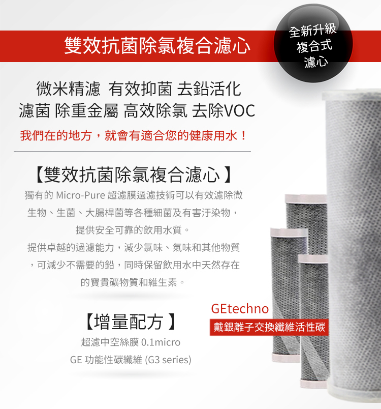 濾材一旦過水使用,即開始過濾水中各種雜質或汙染物,若超過建議更換時間未予更換,將無法確保過濾品質,嚴重將成為細菌溫床,反讓濾水系統汙染。為確保您飲水衛生安全,請定期更換濾心。