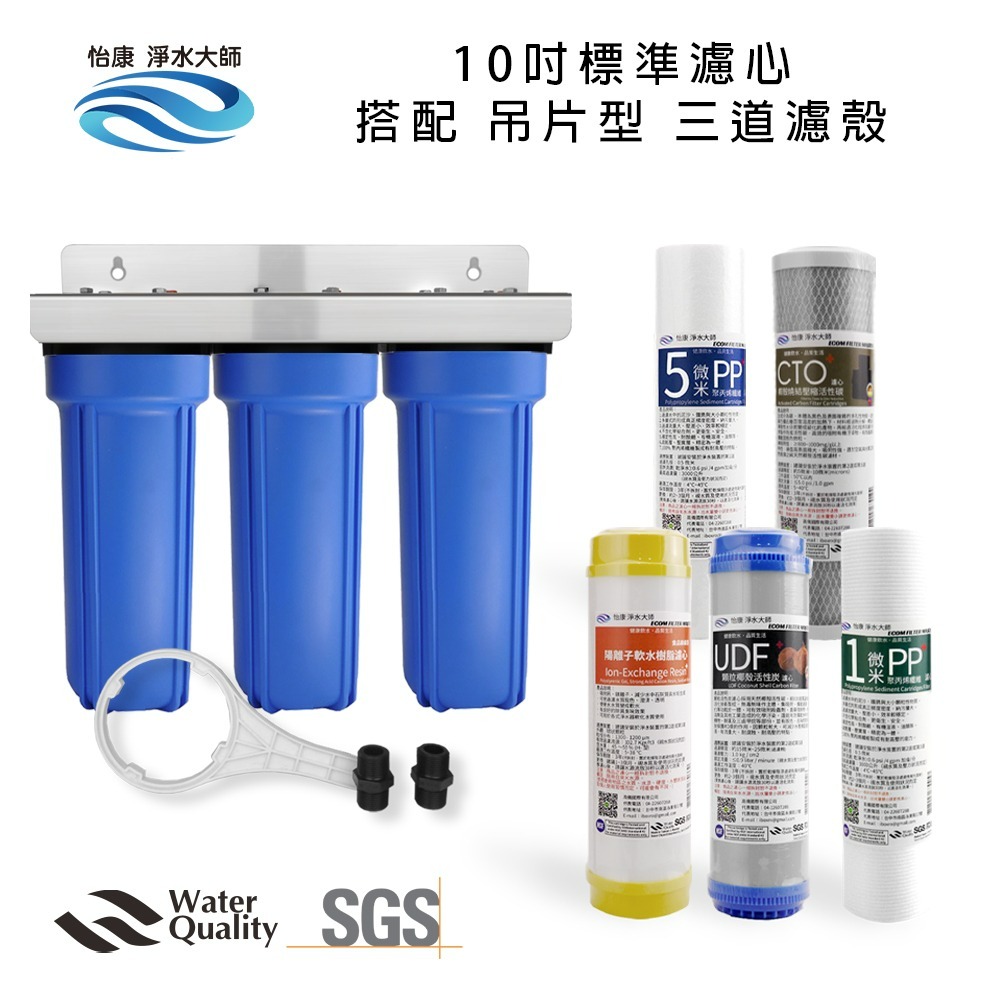 怡康 10吋標準三道 藍瓶濾殼濾心 吊片組《不含安裝》