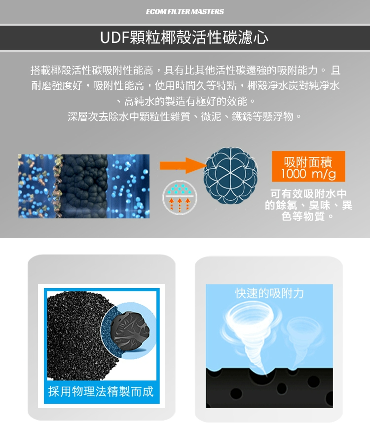 內容:10吋標準濾殼(藍殼)x2、10吋標準濾殼(透明殼)x1、5微米PP濾心x1支、CTO 碳棒活性碳濾心x1支、UDF 顆粒活性碳濾心x1支