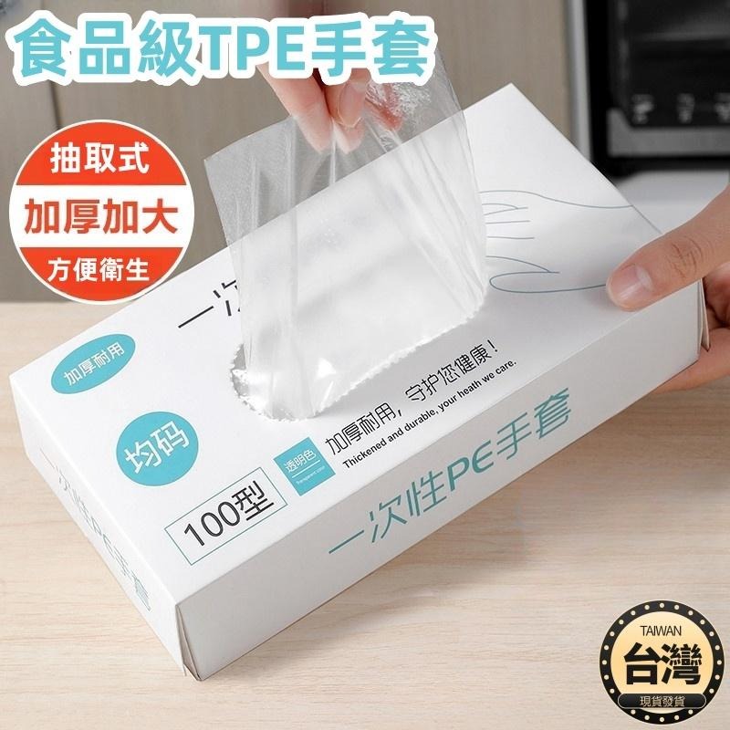 🔴台灣現貨+發票 TPE手套 食品級薄膜手套 拋棄式清潔手套 盒裝 一次性手套 手扒雞手套 透明手套