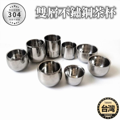 🔴台灣現貨+發票 不鏽鋼茶杯 304直口 雙層杯 鋼杯 隔熱杯 直口杯 茶杯 一口杯 杯子 小杯子 泡茶 茶藝 不鏽鋼杯