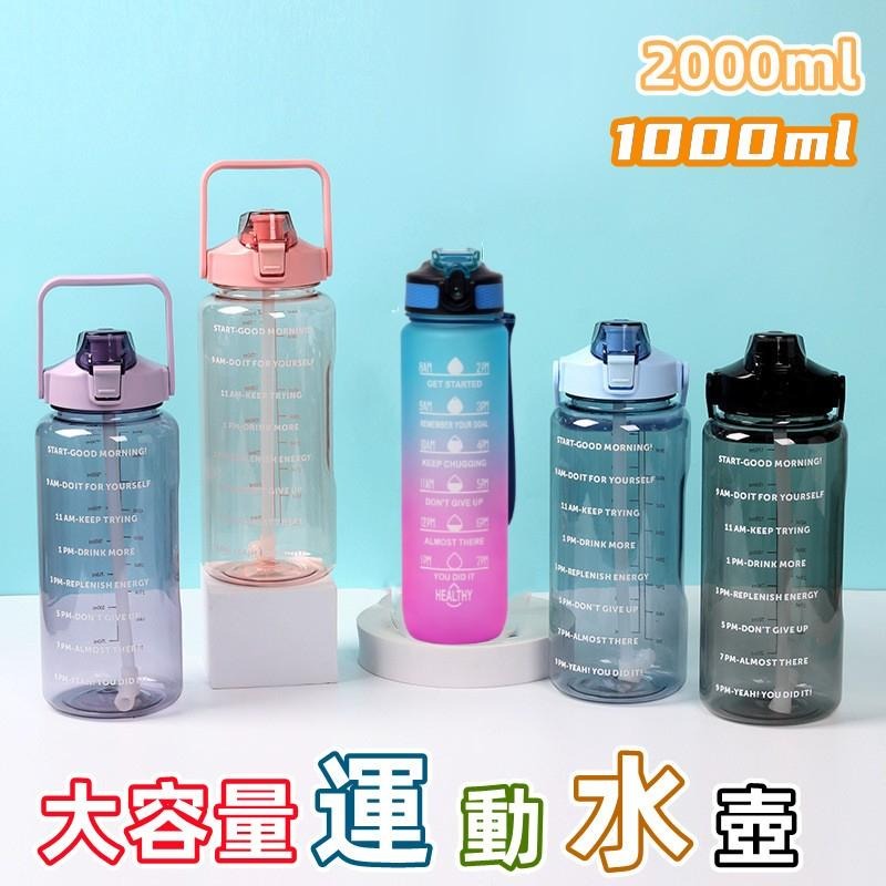 🔴現貨【運動大水壺】 2公升提把水壺 2000ml 大容量水壺 附吸管 健身用 附提把 外出攜帶
