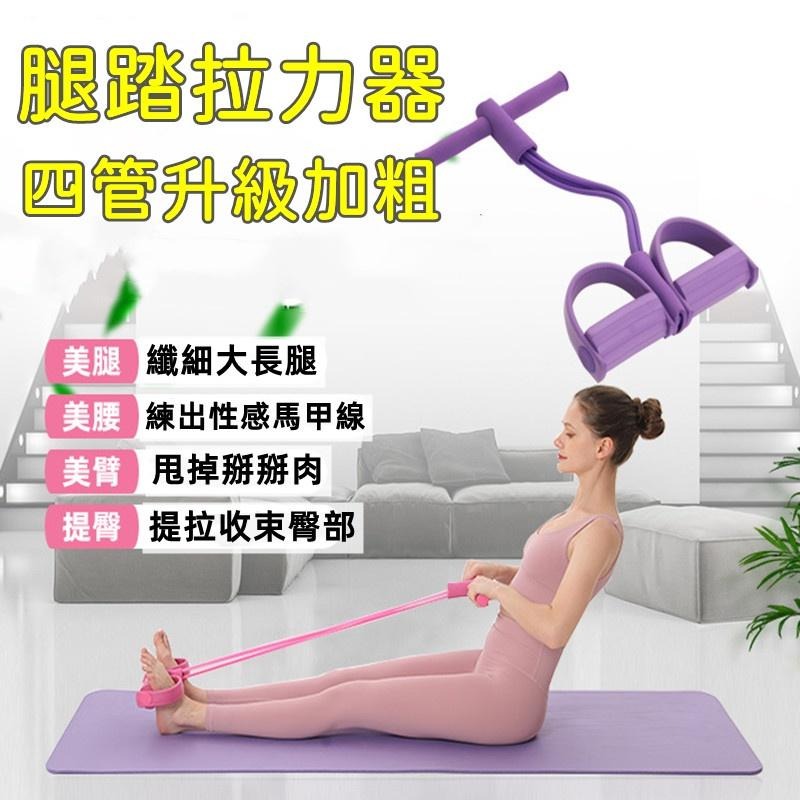 🔴現貨【多功能腳踏4管拉力器】健身器材 瑜珈拉筋繩 美腿器 夾腿器 減肥 瘦肚子 瘦腰 減手臂 瑜珈 彈力繩 拉力繩