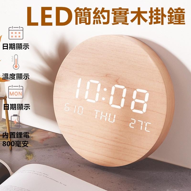 🔴現貨【LED智能掛鐘】 北歐風格電子鐘 電子時鐘 木頭鐘 圓形牆鐘 LED時鐘 數字鐘 掛牆鐘USB充電款 防水