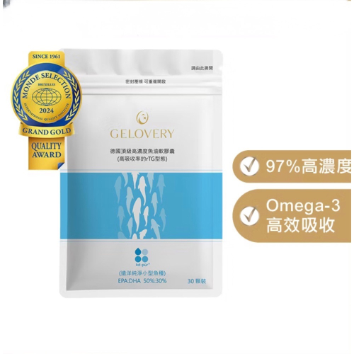 Gelovery 德國KD頂級97%高濃度魚油|高吸收rTG型態『 單包 30顆 』(葷)