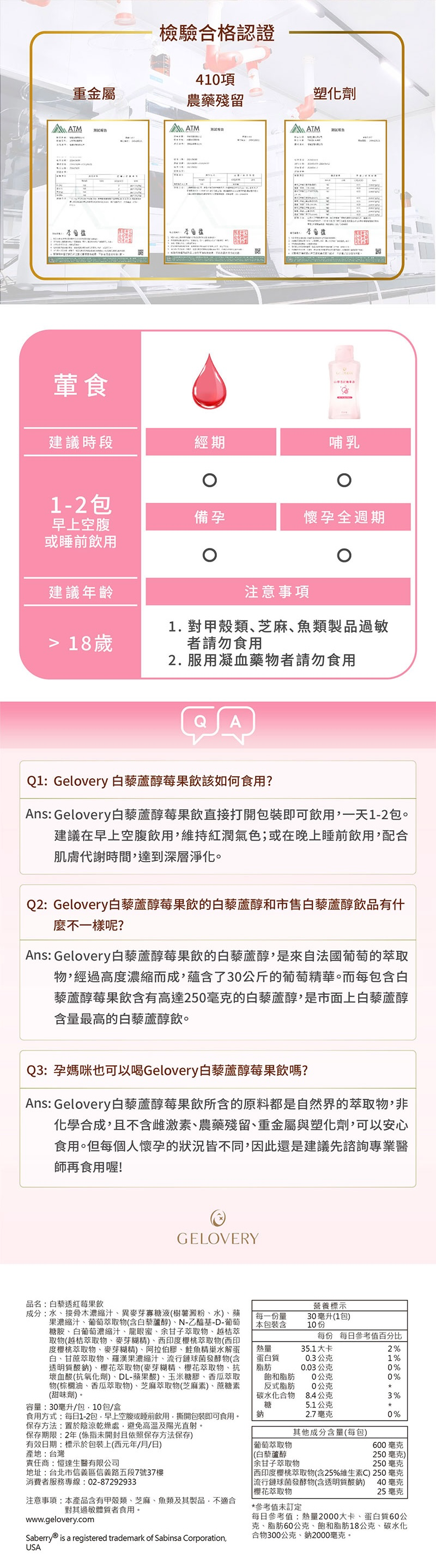 Gelovery 白藜透紅莓果飲30ml『 單盒 10包 』(葷)
