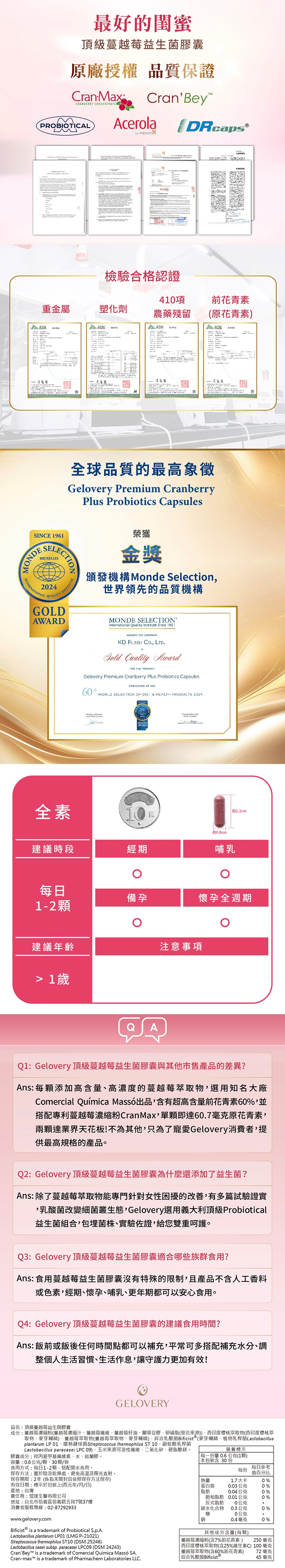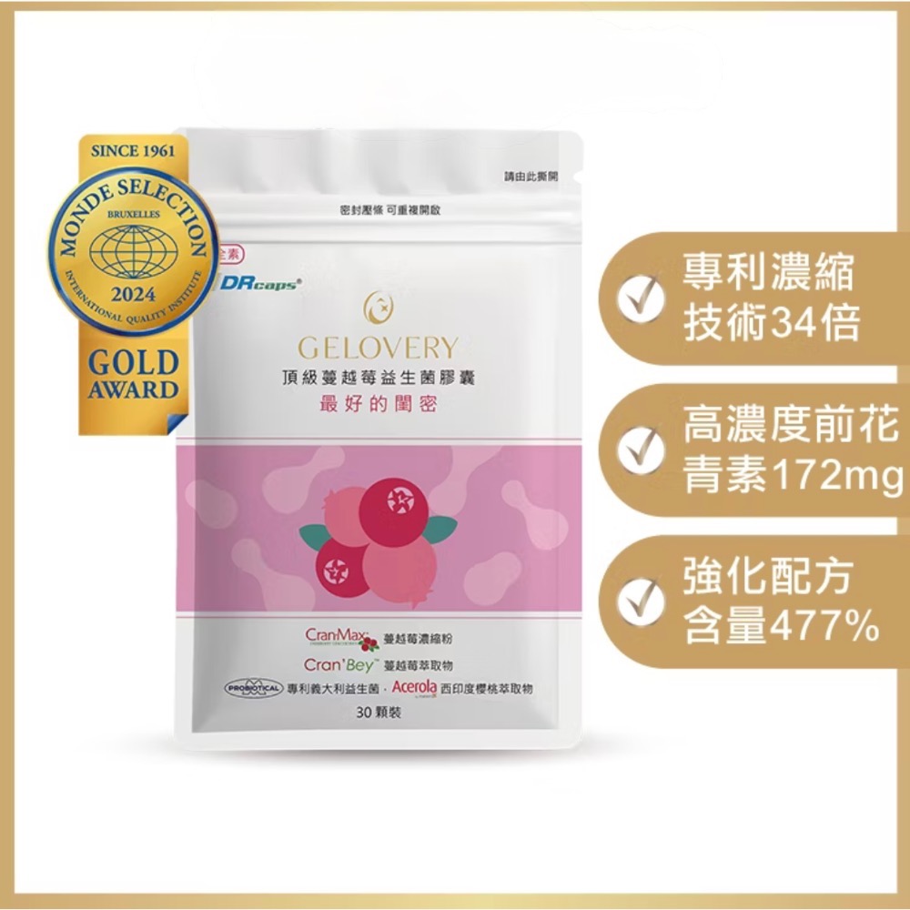 Gelovery 頂級蔓越莓益生菌膠囊『 單包 30顆 』(全素)