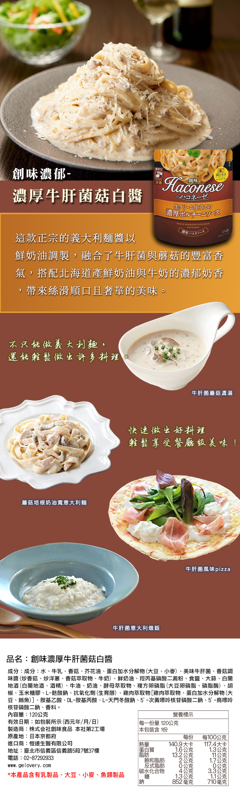 • 濃厚牛肝菌菇白醬120g 濃厚牛肝菌菇白醬120g