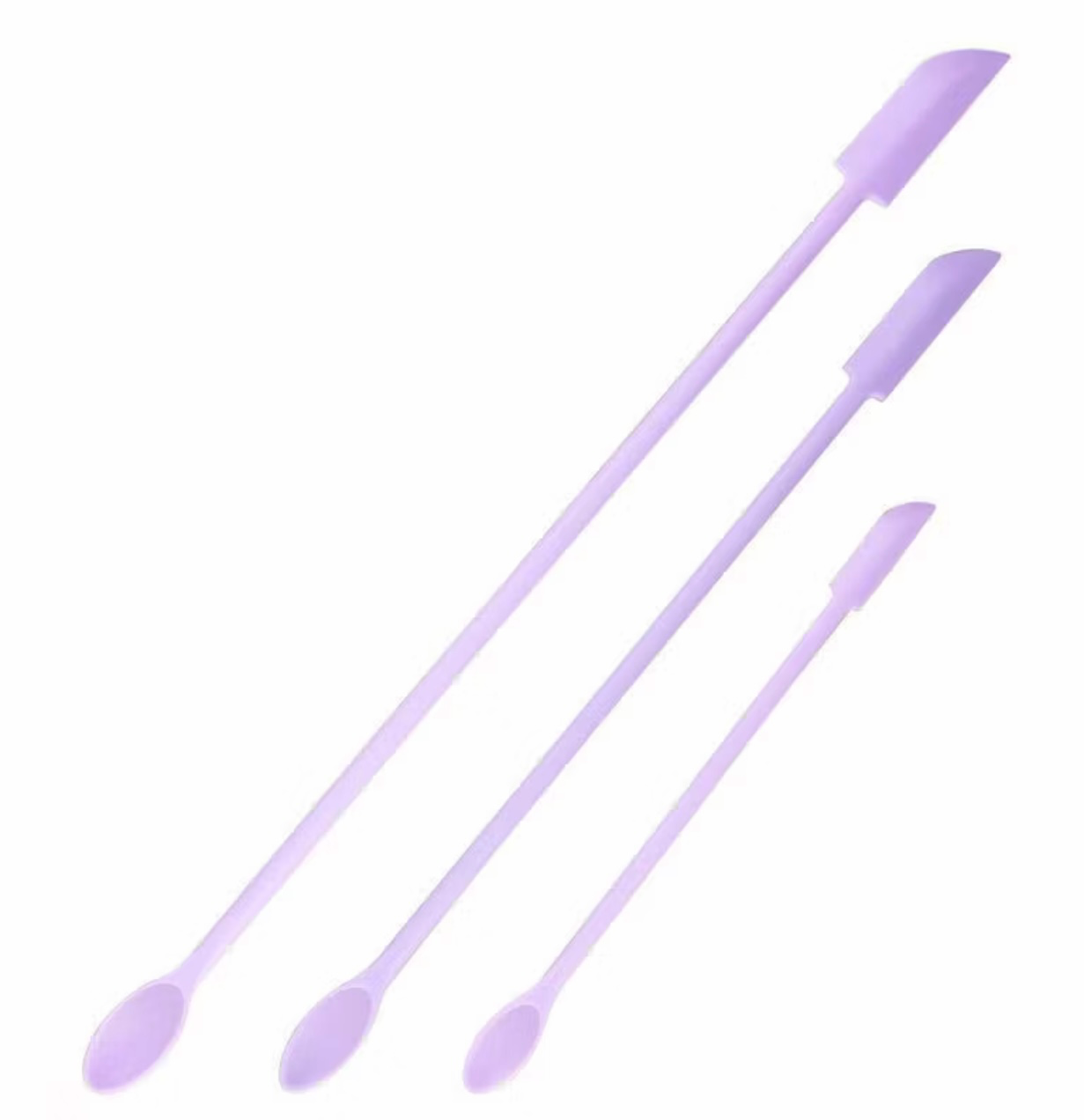 矽膠雙頭刮刀 迷你小尖刮勺3件套組 化妝品挖取勺工具瓶醬料抹刀(紫色)
