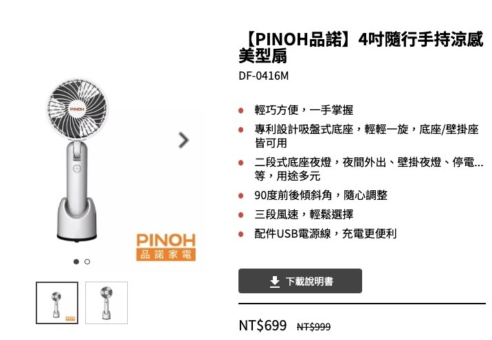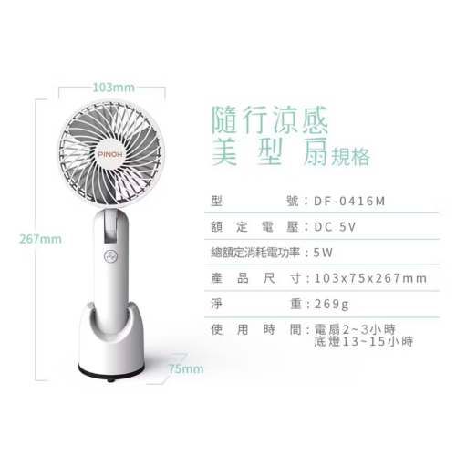【PINOH品諾】4吋隨行手持涼感 美型扇 DF-0416
