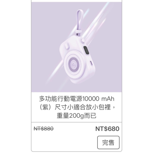 Gelovery 多功能行動電源10000 mAh(紫)尺寸小適合放小包裡,重量200g而已