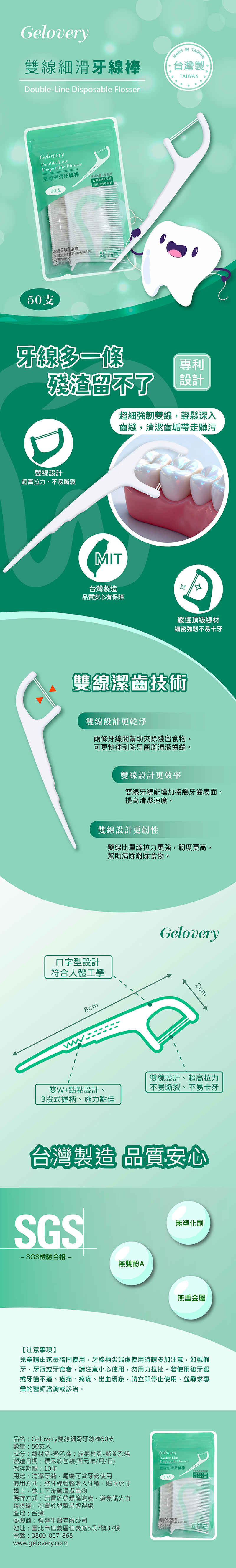 Gelovery雙線細滑牙線棒(50支/包)