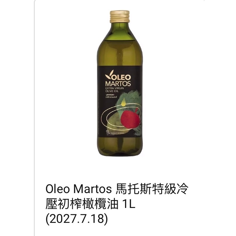 Oleo Martos 馬托斯 特級冷壓初榨橄欖油 1L (一單限1瓶)