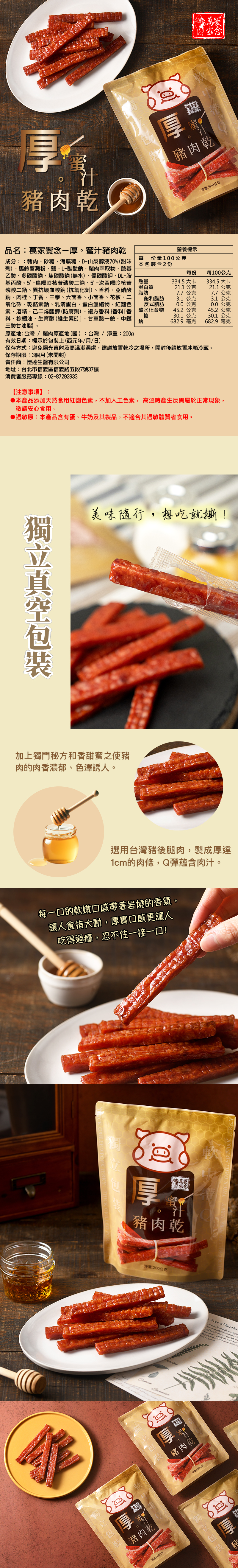 萬家饗念 厚。蜜汁豬肉乾200g(效期2026/2/19)
