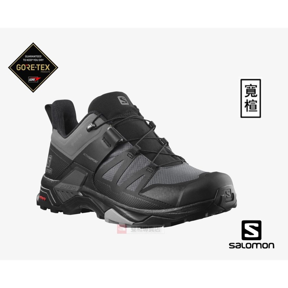 -滿3000免運-Salomon 男 GoreTex防水寬楦低筒登山鞋/X ULTRA 4 /L41289200/灰黑