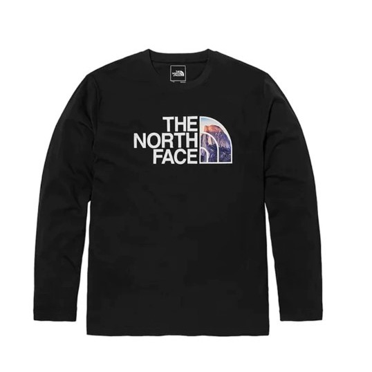 The North Face男款純棉品牌戶外印花寬鬆長袖上衣-黑色 NF0A7QUYJK3
