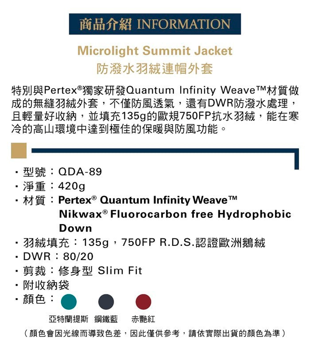 ◆ 創新Pertex®Quantum Infinty Weave™布料外層為無縫線的無縫設計,可防止跑絨