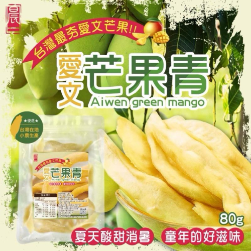 #迎接夏季 超夯愛文芒果青 上市啦😎 #使用台灣在地愛文芒果 小農生產🥭 #酸酸甜甜 好滋味 還不吃爆🐆 夏季 必吃零嘴☀️ 酸酸甜甜 超夠味😋 果肉鮮嫩 口感香脆 果香濃郁💚 越嚼越好吃 一口接一口🥭 ❌無添加 防腐劑 ❌無添加 甜味劑 ❌無添加 色素 芒果青好吃撇步💯 ✔️單獨享用:當作零食直接食用,口感酸甜清脆風味,一種美味的健康零食 ✔️升級加料:將芒果青切成小塊,可加入優格、自製雪花酥、加汽水打成冰沙.....             超夏天的消暑小點😋           夾鏈袋方便保存  適合隨身攜帶 上班、上學、旅行,任何時候都可以享用🥰 一口接一口,酸爽滋味 👑夏季健康零嘴首選 成分:新鮮青芒果、糖、鹽 重量:80g   保存期限:6個月  產地:台灣   保存方式:請置於低溫乾燥處,開封後請冷藏保存,並於一週食用完畢。 ※三歲以下兒童,請在監護人陪同下食用。 ※過敏原:本產品含有芒果及其製品