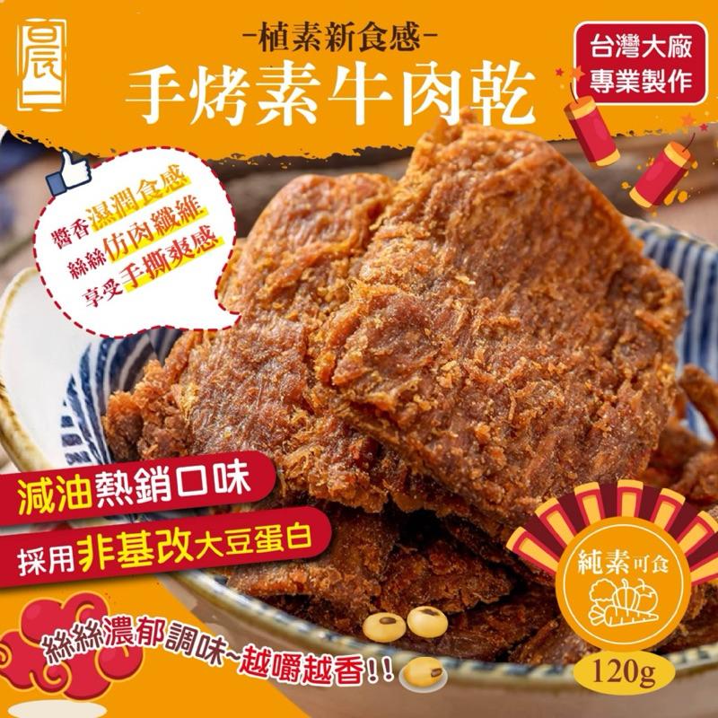 【晨一鮮食】 💯優質植物大豆蛋白💯 素食新選擇 手烤素牛肉乾120g 什麼😲😲這一包牛肉乾居然是🌿全素的!! 🉐採用非基改大豆蛋白製作 仿肉纖維,感覺就像在吃一般牛肉乾一樣 不說真的不知道~ 現在的素肉乾都做的這麼好吃嗎🤤 ㊙️嚴選多種香料,使用傳統秘方調製 蜜汁醬香完全滲透進素肉乾👍👍👍 每一口都是飽滿香氣,絲絲入味 濕潤的口感,越嚼越香💯 🈶添加黑胡椒,香氣更升級🔝🔝 微微香辣🌶️的經典牛肉風味,鹹香新滋味 全新低碳水飲食,補充植物蛋白🫘 低膽固醇的✨植物性蛋白,減少身體負擔🏋️ 🇹🇼台灣大廠製作,🏆品質保障 ✅減油配方✅無添加五辛香料 吃純素的朋友們也能放心吃💕 👑素食界的零食首選!!!