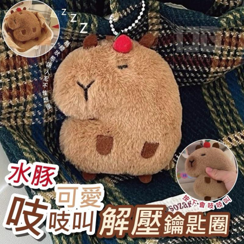 【粿女兒商行】🔥現貨 水豚吱吱叫可愛解壓鑰匙圈 公仔吊飾