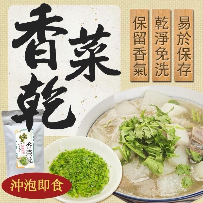 提味的最佳搭檔香菜乾20g 🔶沖泡即食🔶 容易保存,隨時隨心使用😍 有了它再也不怕颱風過後香菜貴森森!!!~~ 國產的香菜,完美鎖住香氣與營養, 重點重點👉 它只需熱水沖泡,就瞬間享受香菜的清新滋味! 小編我是超級香菜控 不論是紅燒魚一定要香菜增個色、提個香 還有煮蘿葡丸子湯灑上一點, 想方設法就是要讓老公、孩子也成為香菜控😜 這家的香菜乾🌿不是傳統熱烘的唷! 是最新超速冷凍技術 🌿營養保留 🌿零脂肪 🌿色香味完整保留 🌿養分更濃縮 🌿可長期保存不變質 🌿質地輕 方便攜帶 🌿復水性佳,方便沖泡 🌿過ISO22000、FSSC22000系統驗證的冷凍乾燥廠 🌿專門幫許多大品牌代工並外銷到各國 吃得也較安心有保障🙌 🍲 也解決香菜不易保存的特性,無需繁瑣的清洗與切割,隨時隨地,輕鬆享用! 🌱 **新鮮如初**:每一包香菜乾都保留了香菜的原汁原味,讓你的料理瞬間升級! 無論是湯品、沙拉還是炒菜,香菜乾都是你的最佳搭檔! ✅煮湯 ✅涼拌 ✅炒菜 ✅烘培 ✅配料 總重:20g(±5%) 保存期限:一年 產地:台灣