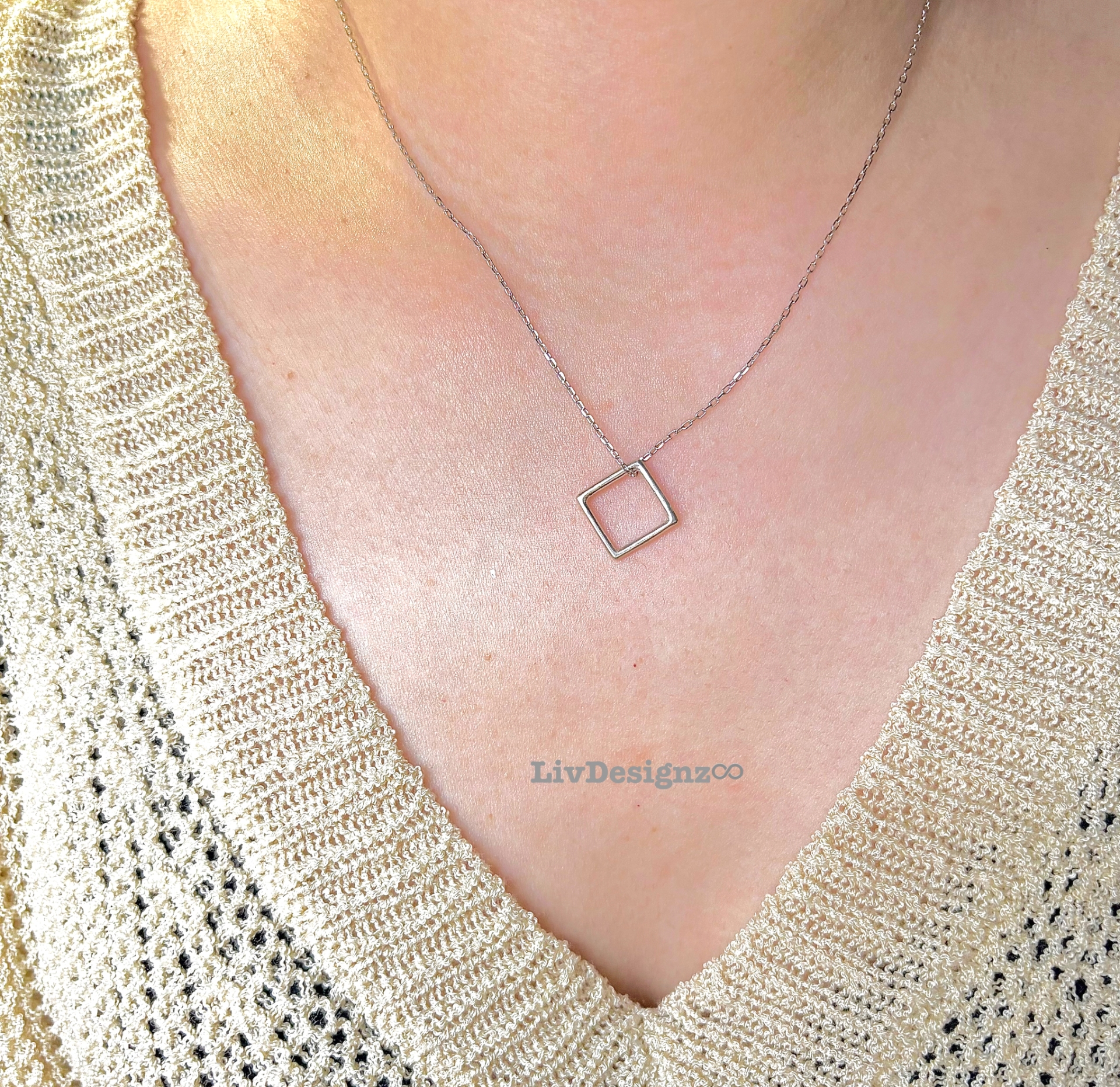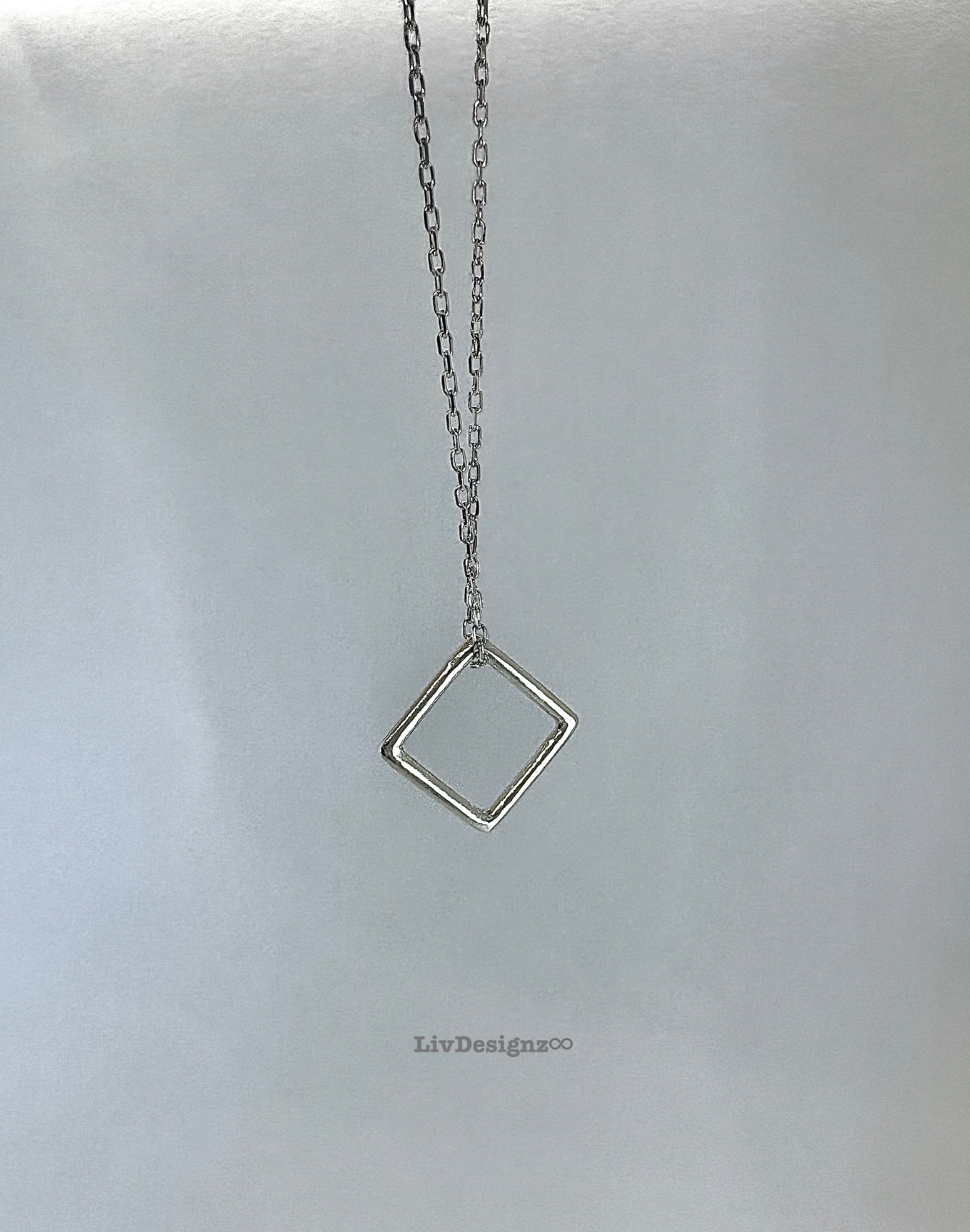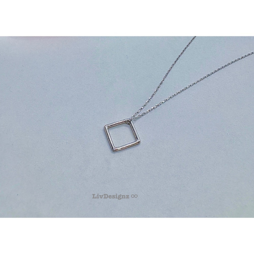 LivDesignz-925純銀義大利項鍊- 設計感鏤空925純銀幾何項鍊-方型