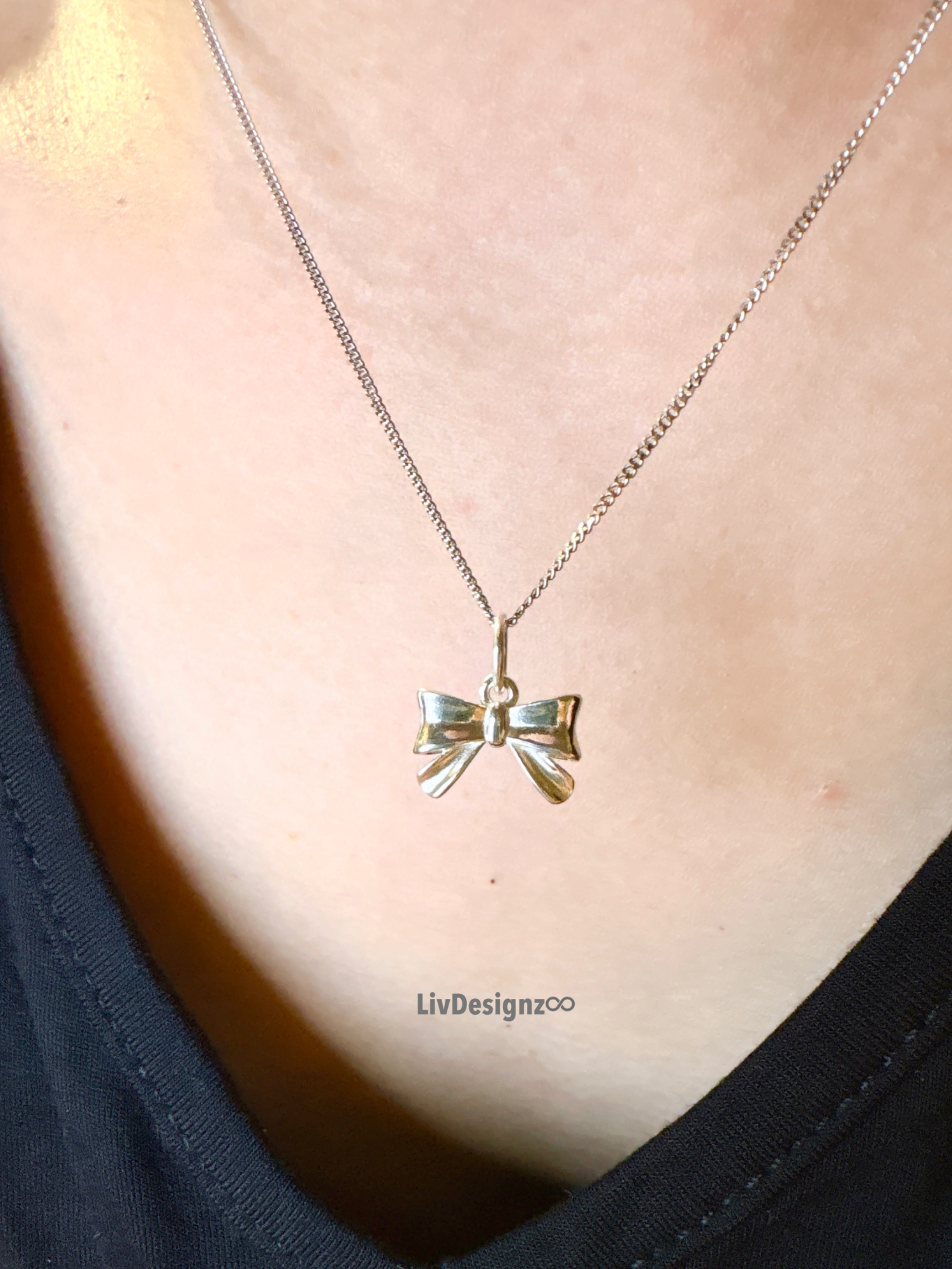 LivDesignz-現貨-義大利純銀鍊-925純銀項鍊-純銀蝴蝶結🎀 直徑約1.1公分