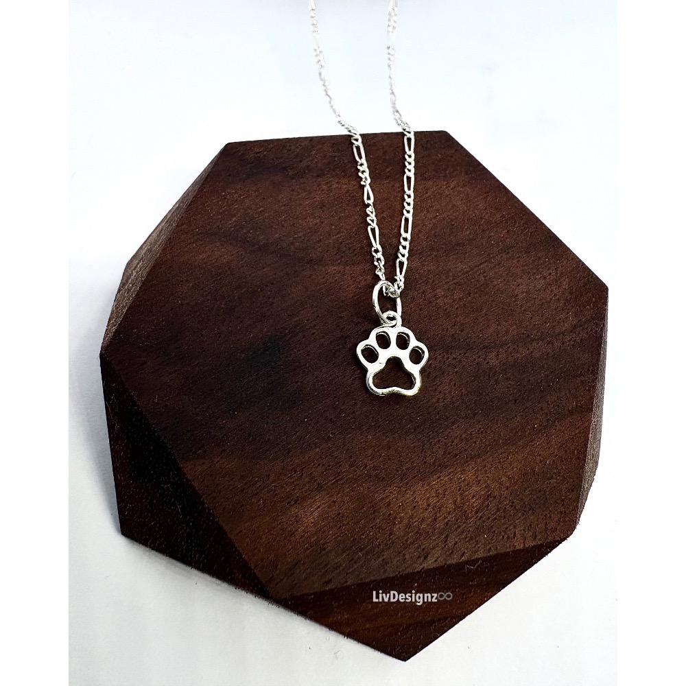 LivDesignz-現貨-925純銀義大利銀項鍊-925純銀貓腳印/狗掌/狗腳印純銀項鍊 直徑約0.9公分