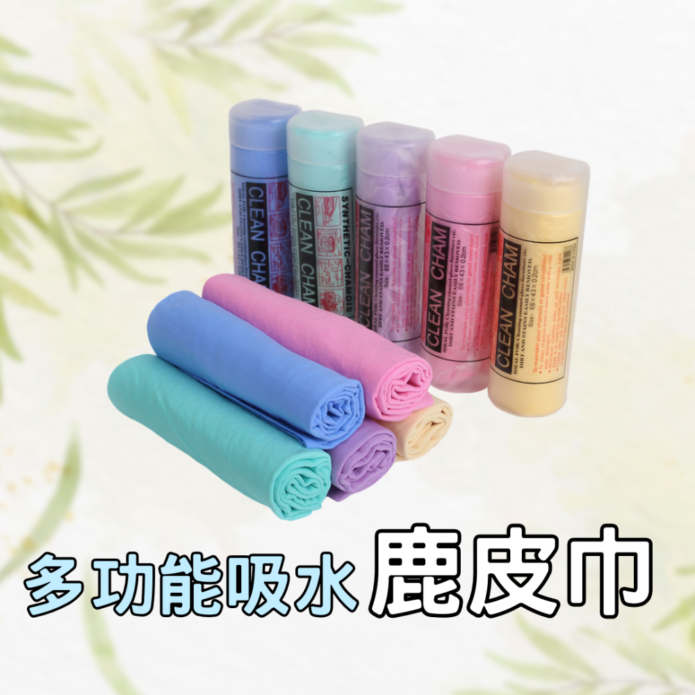 鹿皮布因天氣炎熱乾燥,可能會呈硬塊狀,請先置於水中浸濕,擰乾即可使用