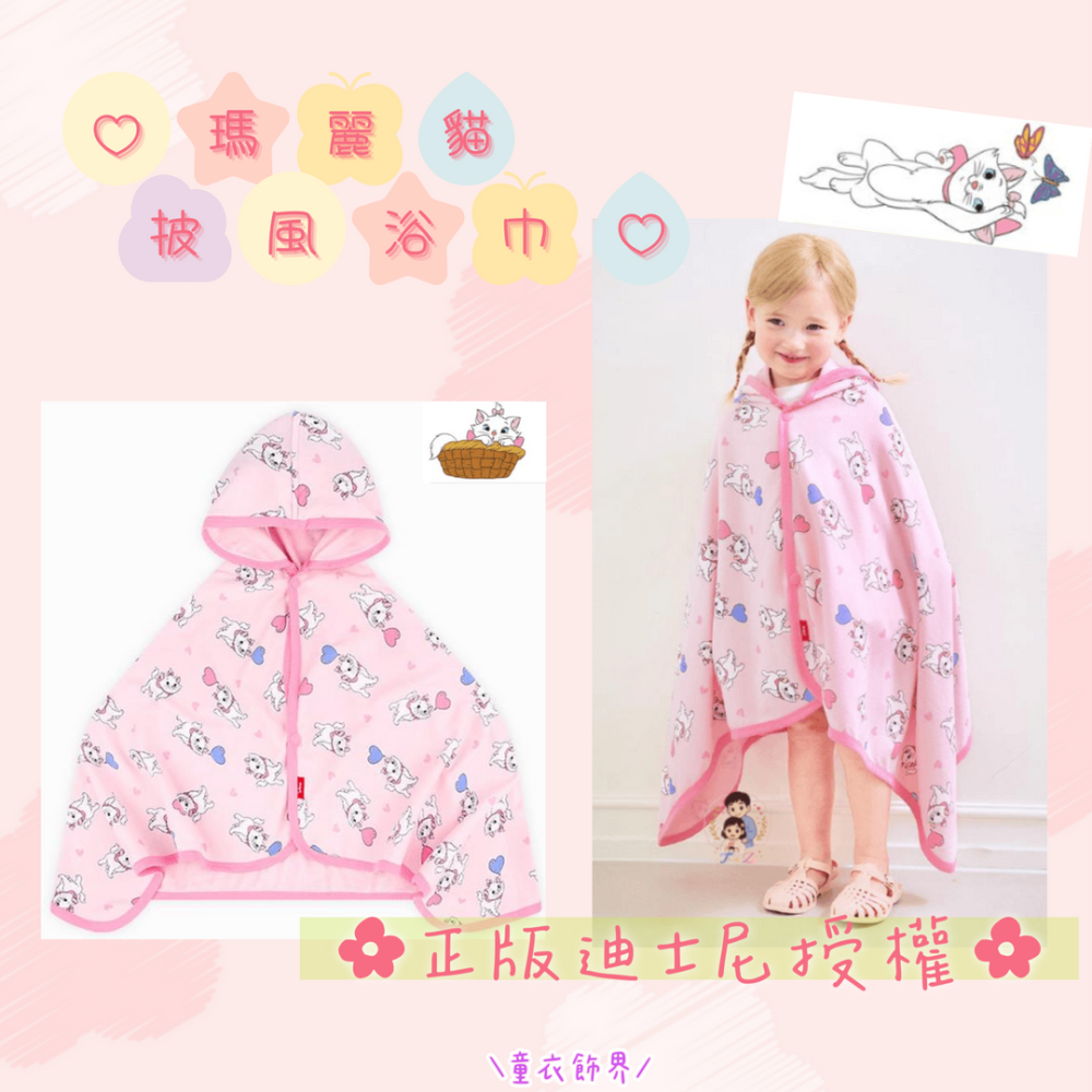 韓國人氣童裝品牌 Mollimelli 與 Disney 迪士尼 正版授權聯名推出這款可愛度爆表的「瑪麗貓披風浴巾」,粉嫩造型、超柔質感,是女孩最可愛又實用的配件!