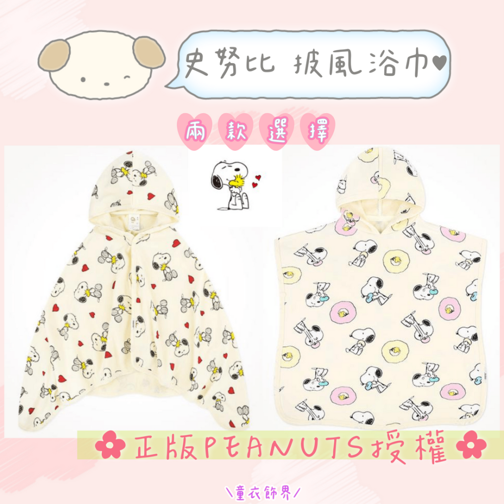 來自韓國人氣童裝品牌 milkmile 與 PEANUTS 史努比正版授權合作推出的超人氣披肩浴巾,圖案是好友愛&甜甜圈史努比,萌翻一整年!