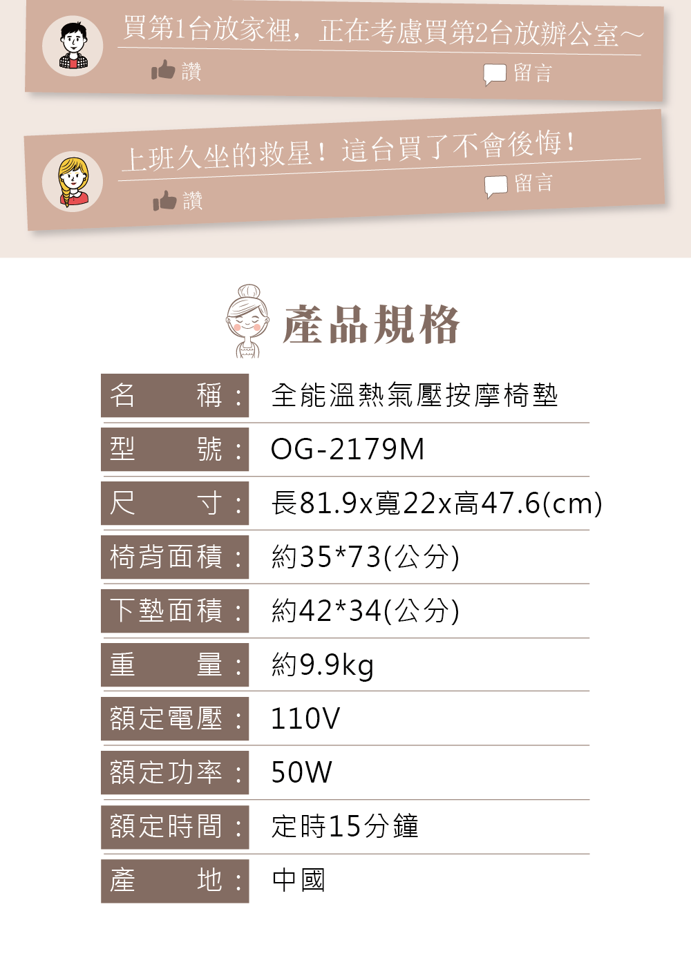 【OGAWA】OG-2179M 全能溫熱氣壓按摩椅墊