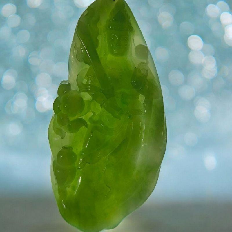 【天然緬甸A貨翡翠 滿綠持劍觀音】 種老起膠,化底無棉,通體濃郁滿綠,色澤均勻細膩。 持劍觀音,法相莊嚴,守護信眾,背面六字箴言,驅邪避凶。 由翡翠大師精工雕刻,線條利落,神韻生動,細節入微。 整體為大件厚裝,份量感十足,氣場強大。 附專屬收藏盒與雙重證書,保真收藏兼具投資價值。 無論自戴或贈禮,皆為上選極品。 翡翠中的守護神,值得珍藏!