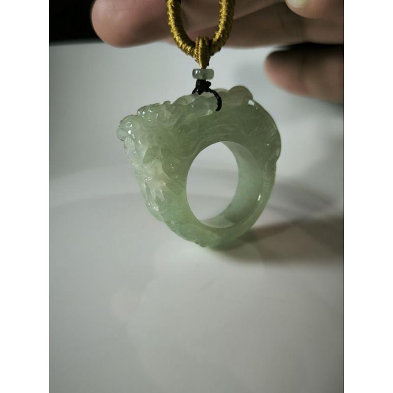 天然緬甸A貨翡 翠晴底龍頭扳指戒 雕工精湛 種老肉細 附證書 可當掛件,戒指