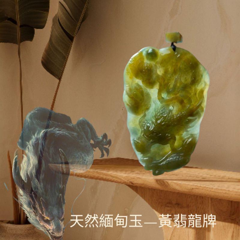 天然緬甸A貨翡翠 天然黃翡 霸氣龍牌 附證書 大師證