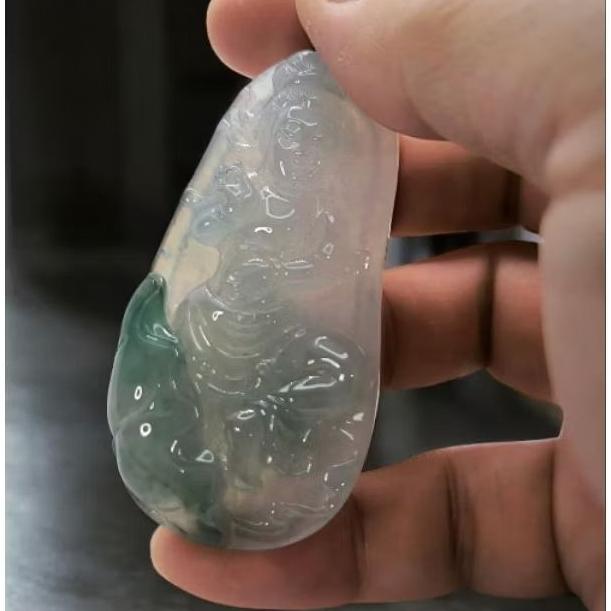 天然緬甸A貨翡翠 冰膠飄綠花 蓮花觀音 種老肉細。附證書