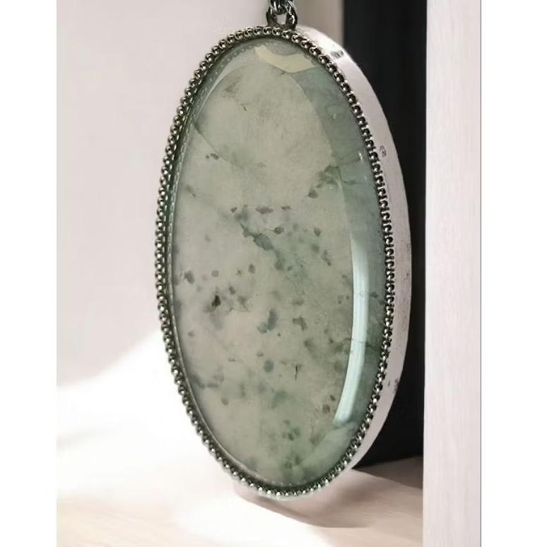 天然緬甸A貨翡翠 木拿 玻璃種 雪花棉 無事牌 925純銀包K。附臺灣證書 國際大證