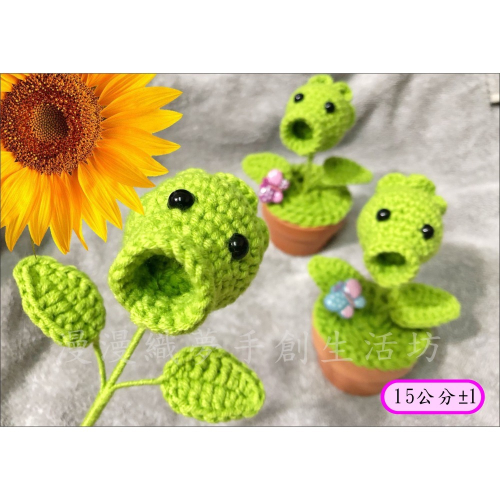 豌豆射手 毛線花 盆栽 成品『漫漫織夢』 植物大戰殭屍 仿真花 辦公桌 舒壓 花盆 人造花 擺飾 擺件 裝飾 臺灣鉤織