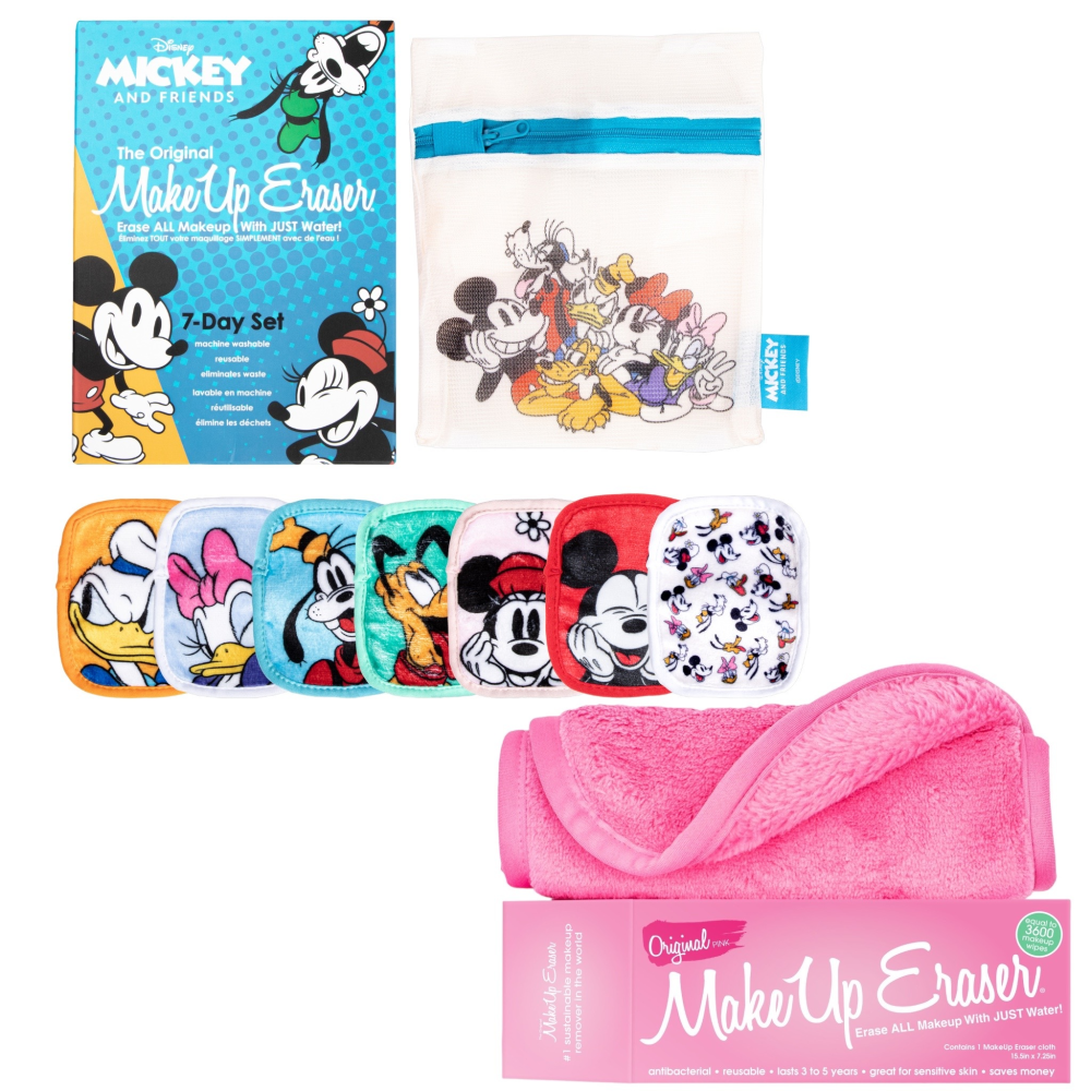 1)MakeUp Eraser原創魔法卸妝巾-迪士尼米奇家族七件組(迷你卸妝巾*7、洗衣收納袋)