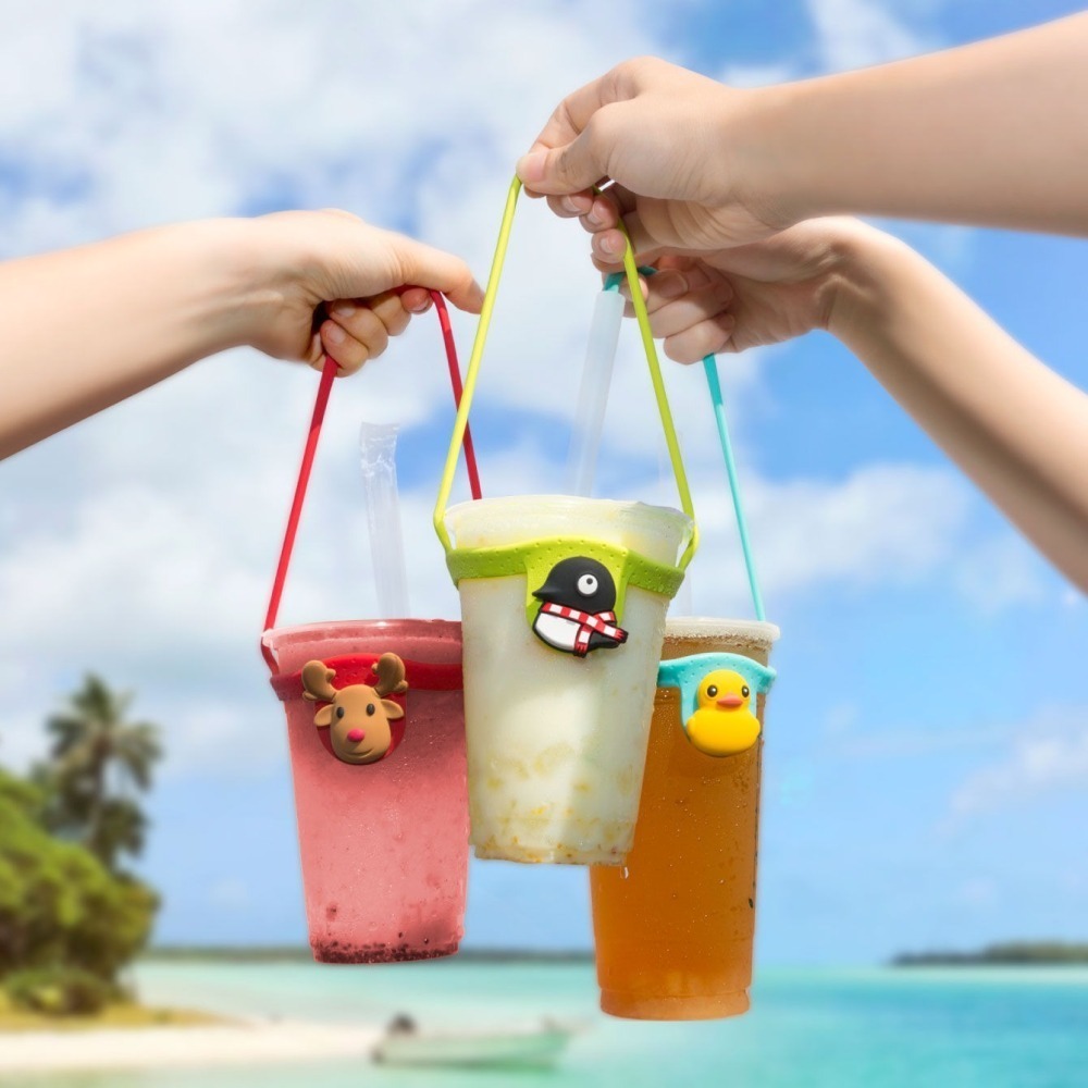 。彈性矽膠綁帶,兼容市售 350ml 到 750ml 飲料杯