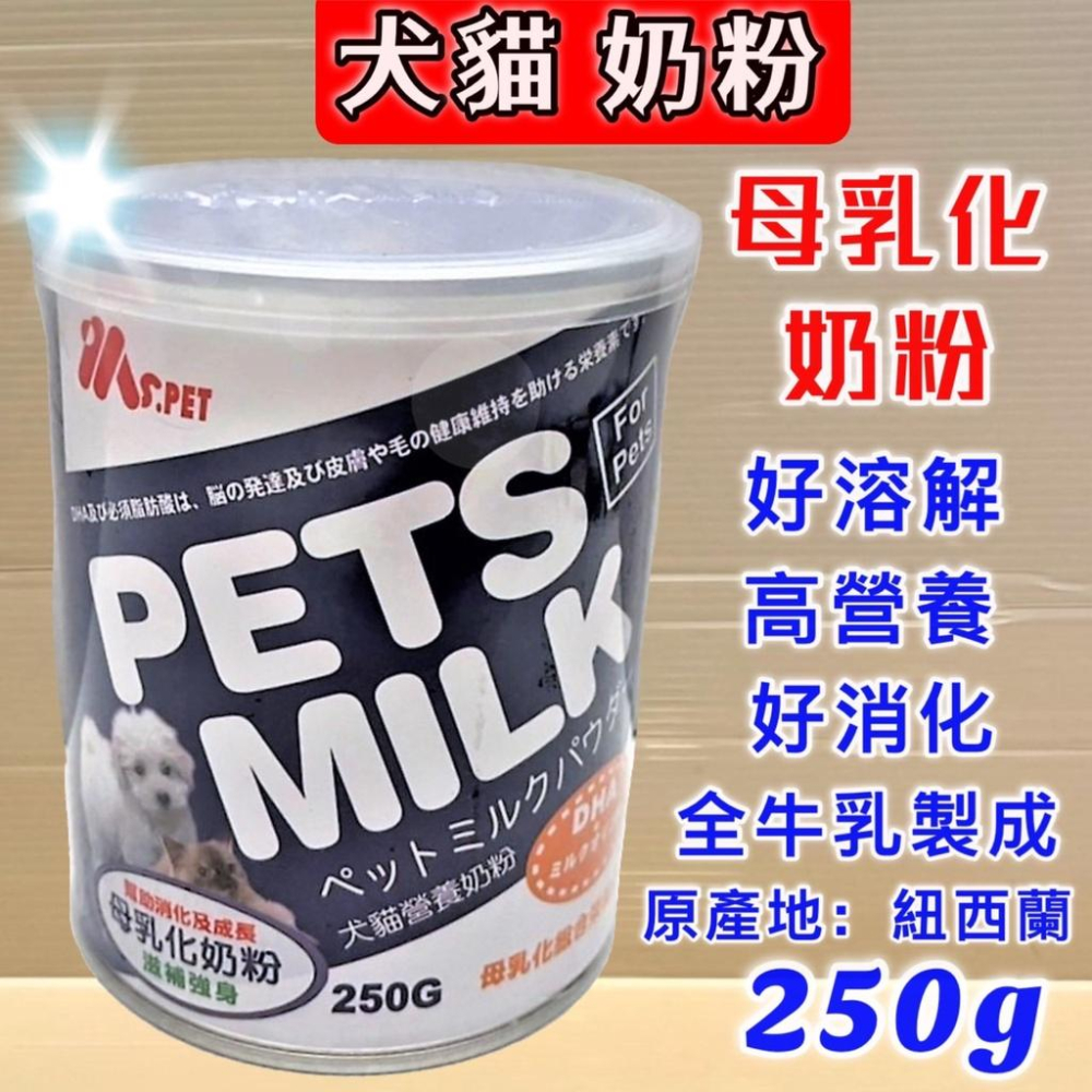 💖妤珈寵物店💖台灣製~ MS.PET 母乳化 奶粉 250g/罐 即溶奶粉 高營養 牛乳調製而成 犬貓適用