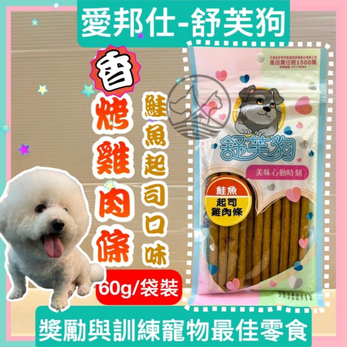 ✪妤珈寵物店✪【舒芙狗】香烤雞肉條 鮭魚起司 60g/包 老幼 成犬 訓練點心 營養點心 犬 點心 狗 零食 獎勵 訓練