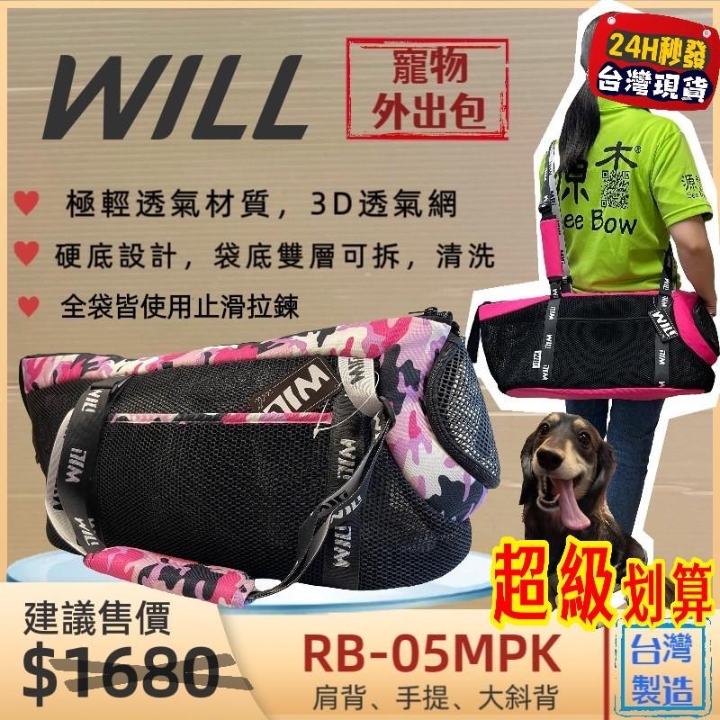全新現貨✪妤珈寵物店✪附發票~RB-05 迷彩➤黑網➤粉色 WILL 極輕超透氣外出包可肩揹/大斜揹 犬 狗 貓