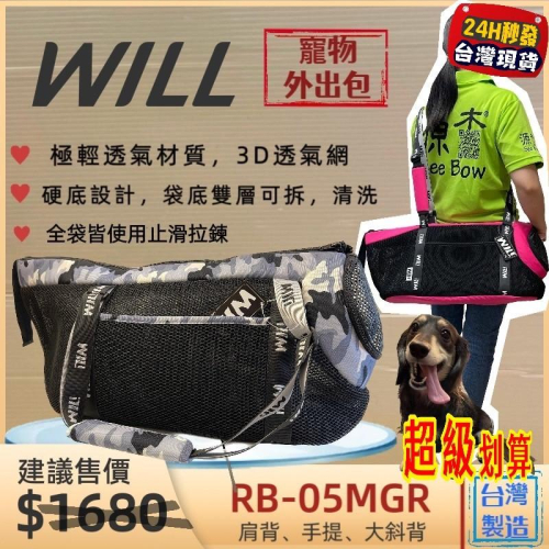 全新現貨✪妤珈寵物店✪RB-05 迷彩➤黑網➤灰色 WILL 極輕超透氣外出包可肩揹/大斜揹 犬 狗 貓